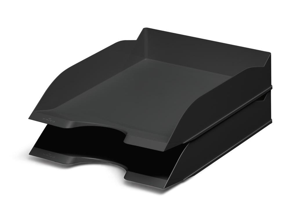 Stohovateľný buď zvisle alebo odsadene. Predná strana zabraňuje vykĺznutiu dokumentov. Pre formáty A4 až C4.