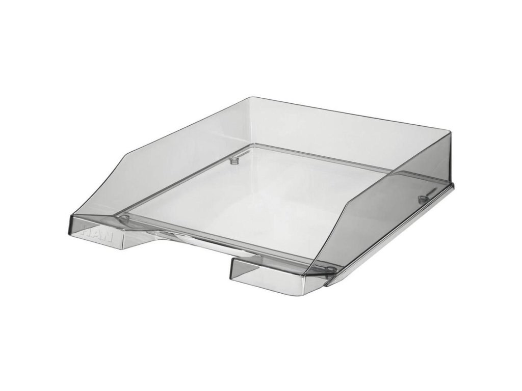 Stohovateľný plastový priehľadný odkladač formátu A4. Zadné zarážky umožňujú odkladače stohovať aj stupňovito dozadu. Väčšie balenie 6 ks.Farba: priehľadná sivá