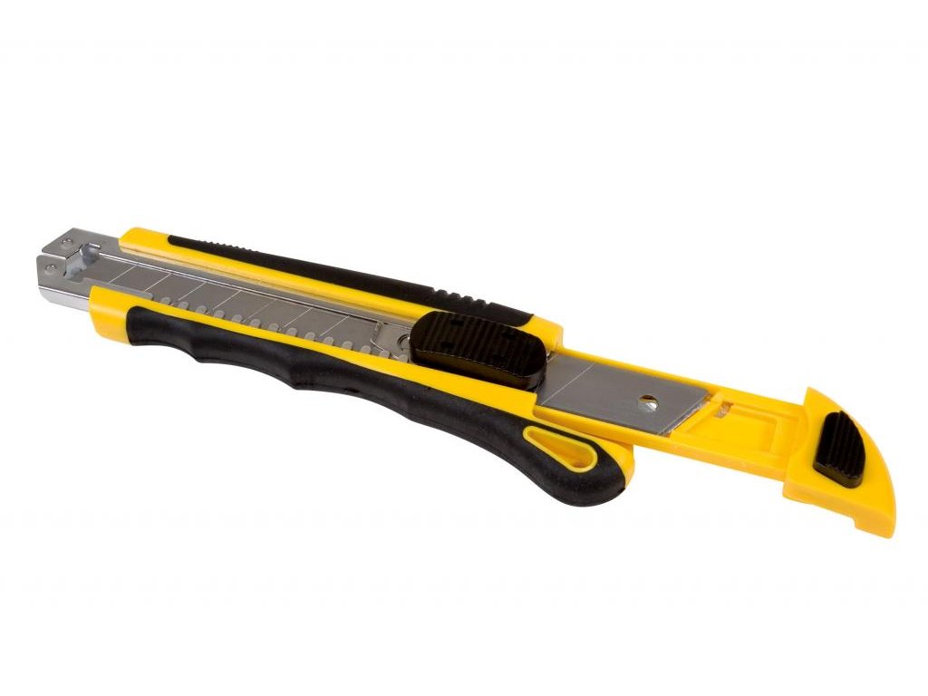 Profesionálny rezač s puzdrom z ušľachtilej ocele, gumenou zónou pre dokonalé uchytenie a otvorom na zavesenie. Po vytiahnutí opotrebovaného noža sa zasunutím bežca nainštaluje z integrovaného zásobníka automaticky nôž nový.Šírka čepele: 18 mm.