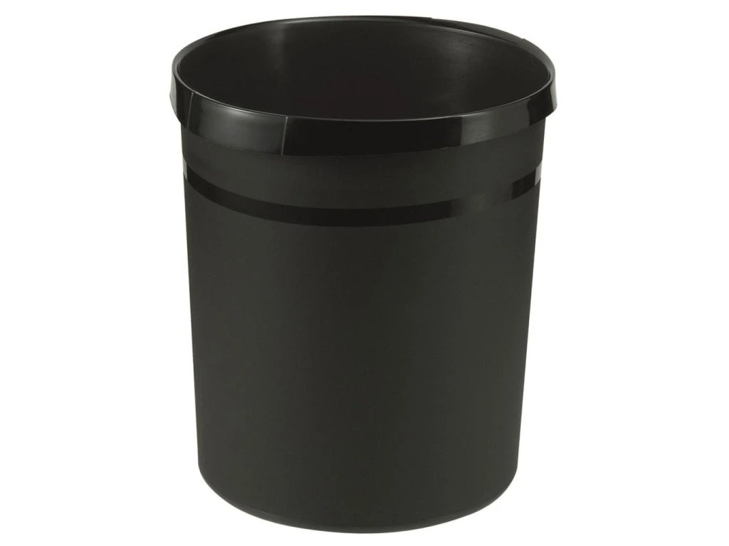 Kancelársky plastový kôš na papier HAN vybavený obrubou na uchytenie. Matný vonkajší a lesklý vnútorný povrch umožňuje jeho bezproblémové čistenie. Objem 18 litrov.Farba: čierna