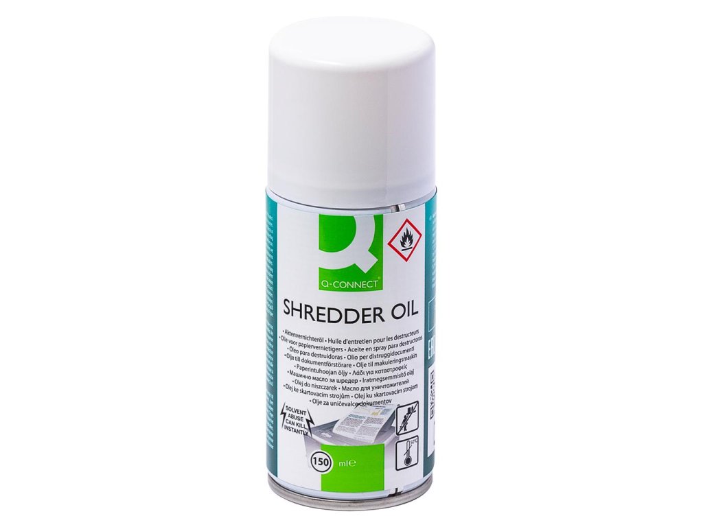 Mazací a čistiaci olej na použitie v skartovačkách dokumentov Zabraňuje nadmernému opotrebovaniu a je biologicky odbúrateľný. Možno použiť pre zariadenia s rezaním častíc. Obsah: 150 ml.Dodatočné parametre