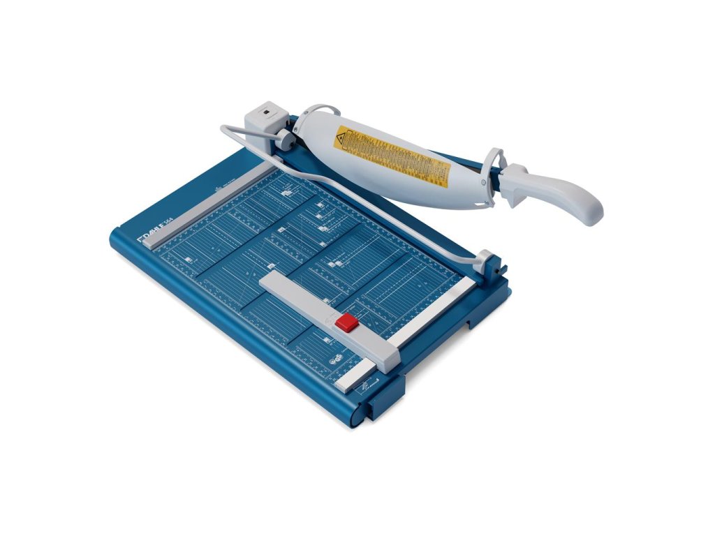 Protišmyková, pohodlná a presná páková rezačka s kovovou základňou na rezanie papiera, kartónu, kože, plastu. Inovovaná technológia s laserovým lúčom, indikujúcim reznú líniu. Brúsený vrchný a spodný nôž z kvalitnej nožiarskej ocele Solingen, rotujúci kryt okolo ostria. Stabilný stôl z masívneho kovu so zaoblenými hranami a protišmykovými gumenými nožičkami pre pevné postavenie. Formátovacie čiary na stole pre lepšie zarovnanie materiálov s praktickou mm stupnicou pozdĺž reznej hrany. Presná mierka v cm/inch a DIN formátoch. Výrez na spodnej časti na pohodlné prenášanie. Presný indikátor laserového lúča pre profesionálne výsledky rezania.Veľkosť stola 475 × 310 mm