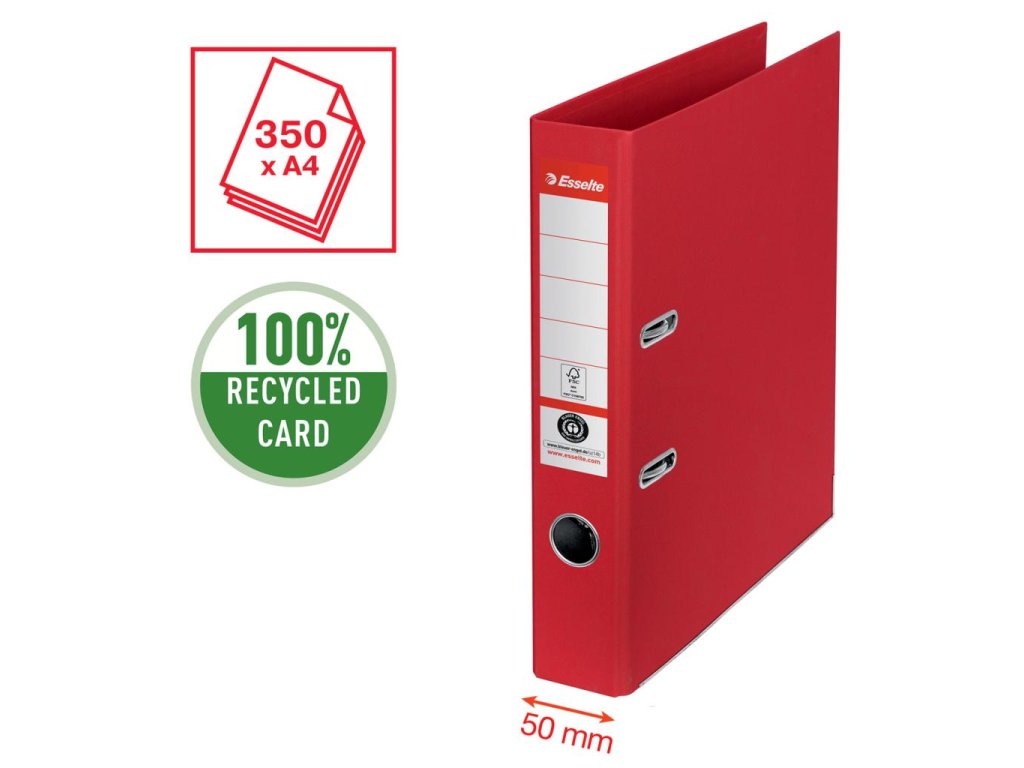 Zakladač pákový Esselte No. 1 CO2 neutrálny, 50 mm - červená