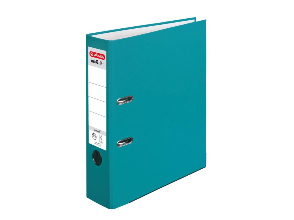 Pákový zakladač maX.file protect A4, Color Blocking, materiál PP. Otvor na zadnej strane a radokrúžok pre lepšiu manipuláciu. Šírka chrbta 8 cm. Farba karibská tyrkysová.Dodatočné parametre