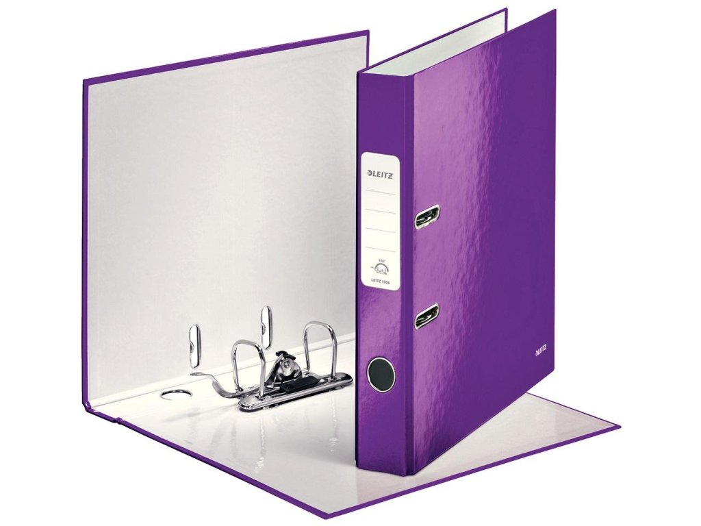 Pákový zakladač rady WOW v žiarivých farbách s dvojfarebným efektom. Unikátna patentovaná mechanika Leitz 180° poskytuje širšie otvorenie, možnosť zakladania väčšieho množstva papierov a o 20 % rýchlejšiu prácu so zakladačom. Vybavený chrbtovým krúžkom, rado zámkom a samolepiacim chrbtovým štítkom, ktorý môže byť v prípade potrebyodstránený. Kapacita 350 listov. Väčšie balenie 10 ks. Chrbát 5 cm, farba purpurová.