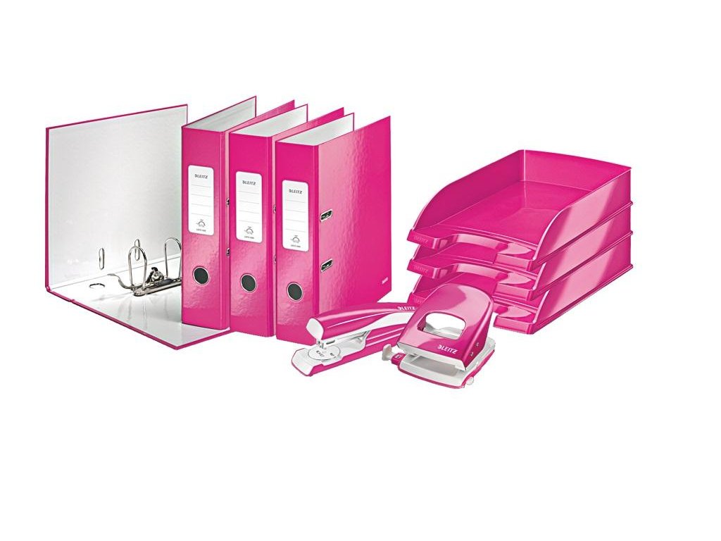 Pákový zakladač rady WOW v žiarivej metalickej ružovej farbe s dvojfarebným efektom. Unikátna patentovaná mechanika Leitz 180° poskytuje širšie otvorenie, možnosť zakladania väčšieho množstva papierov a o 20 % rýchlejšiu prácu so zakladačom. Vybavený chrbtovým krúžkom, rado zámkom a samolepiacim chrbtovým štítkom, ktorý môže byť v prípade potreby odstránený. Šírka chrbta 8 cm, kapacita 600 listov. Väčšie balenie 10 ks.