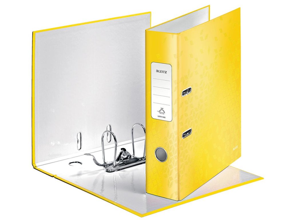 Pákový zakladač rady WOW v žiarivej žltej farbe s dvojfarebným efektom. Unikátna patentovaná mechanika Leitz 180° poskytuje širšie otvorenie, možnosť zakladania väčšieho množstva papierov a o 20 % rýchlejšiu prácu so zakladačom. Vybavený chrbtovým krúžkom, rado zámkom a samolepiacim chrbtovým štítkom, ktorý môže byť v prípade potreby odstránený. Šírka chrbta 8 cm, kapacita 600 listov. Väčšie balenie 10 ks.Dodatočné parametre