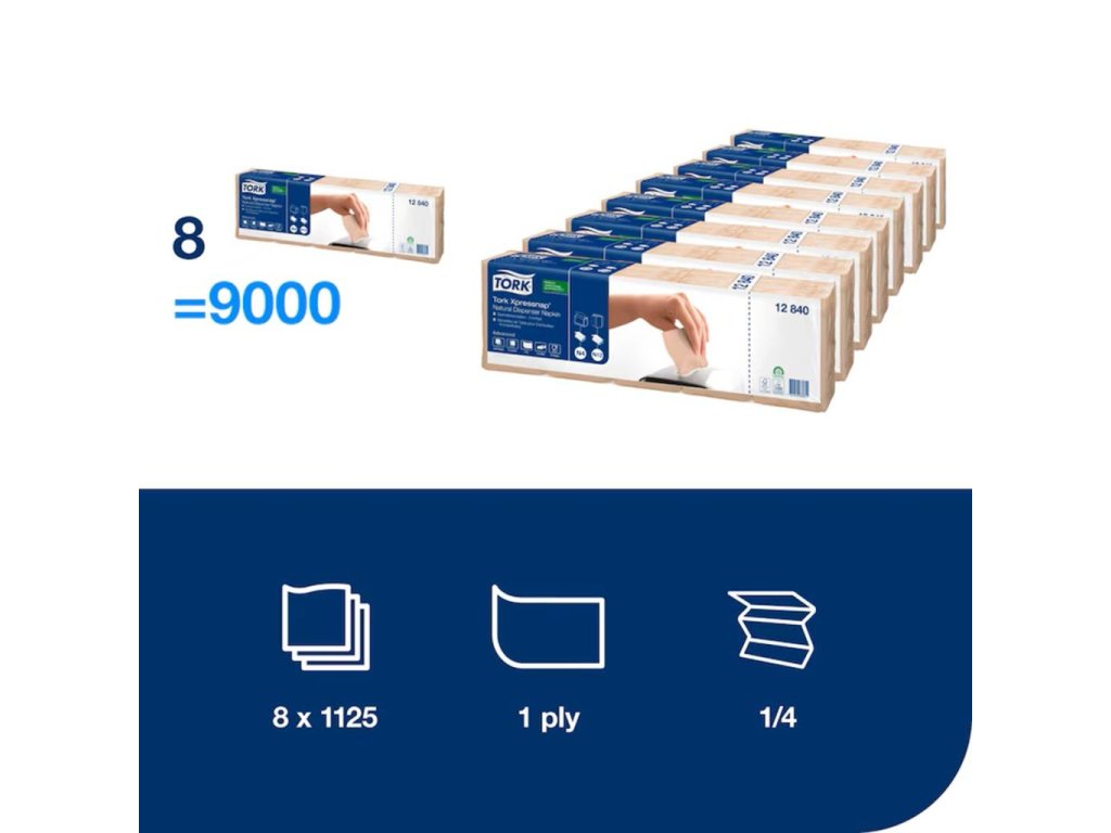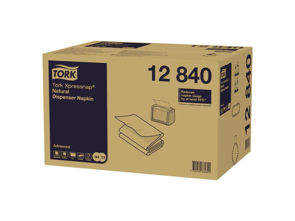 Tork Xpressnap® servítky do zásobníka sú výborné pre samoobslužné reštaurácie.Tento systém vám pomôže znížiť spotrebu servítok o 25 % v porovnaní s tradičnými zásobníkmi servítok, nakoľko hostia sa dotknú len tej servítky, ktorú použijú. Tork Xpressnap® natural 1-vrstvové servítky do zásobníka sú vyrobené zo 100 % recyklovaných vlákien.Dĺžka rozloženého útržku: 21.30 cm