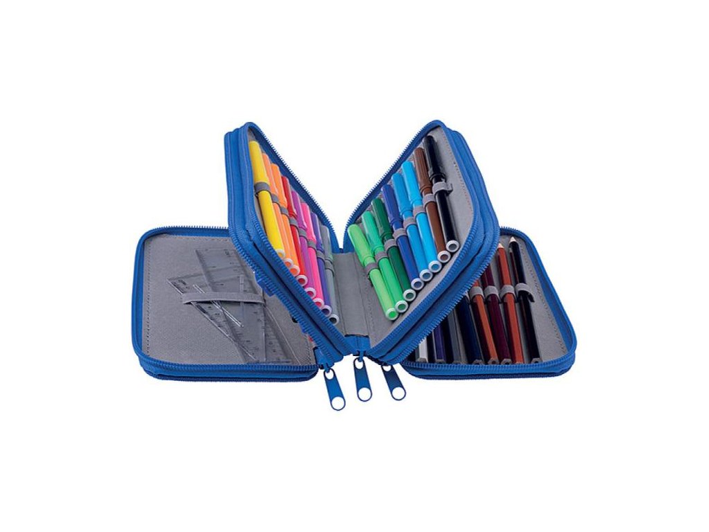 Školský peračník s výbavou v 3 priehradkách. Sada obsahuje: pravítka, 3 perá, ceruzka, guma, strúhadlo, 16 fixiek, 16 pasteliek. Mix motívov.Dodatočné parametre
