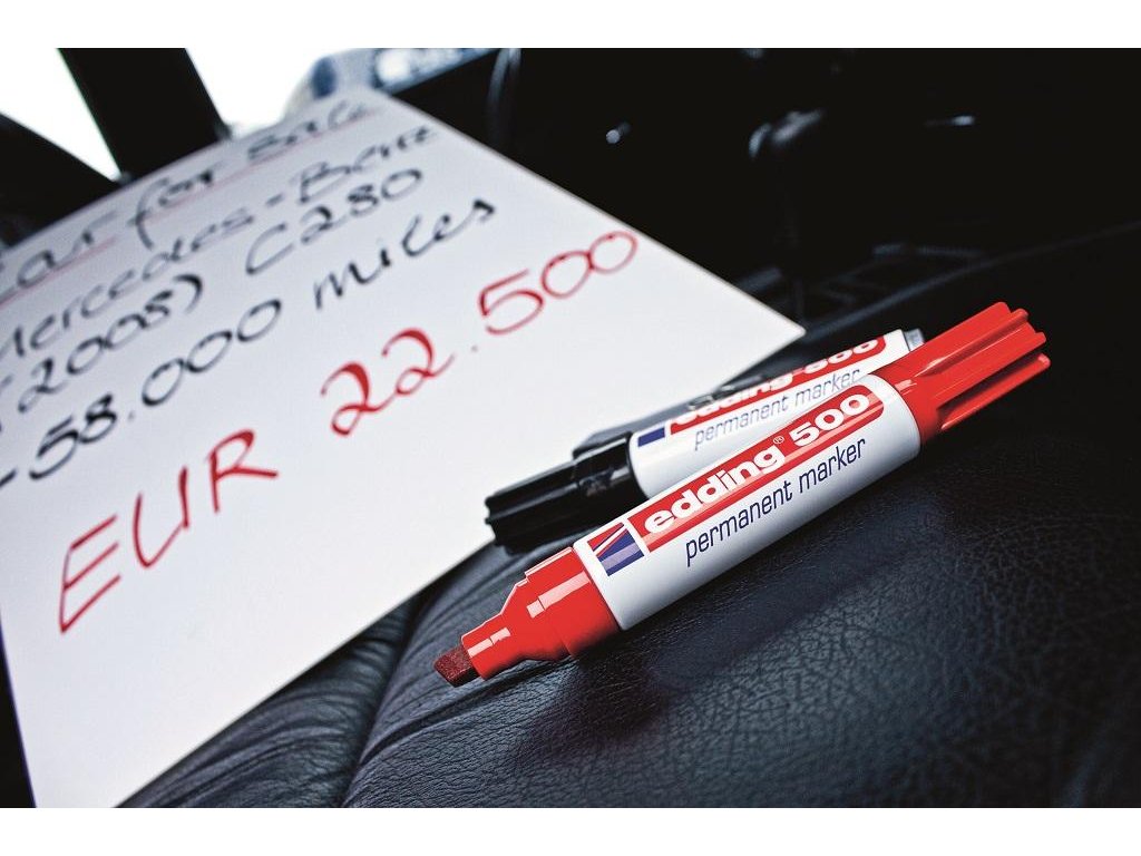 Popisovač s permanentným atramentom na popisovanie takmer na všetky materiály vrátane kovu, skla a umelých hmôt. Hliníkový obal. Hrot zrezaný, šírka stopy 2 - 7 mm. Dopĺňateľný atramentom edding T 25. Väčšie balenie 10 ks.Farba: čierna