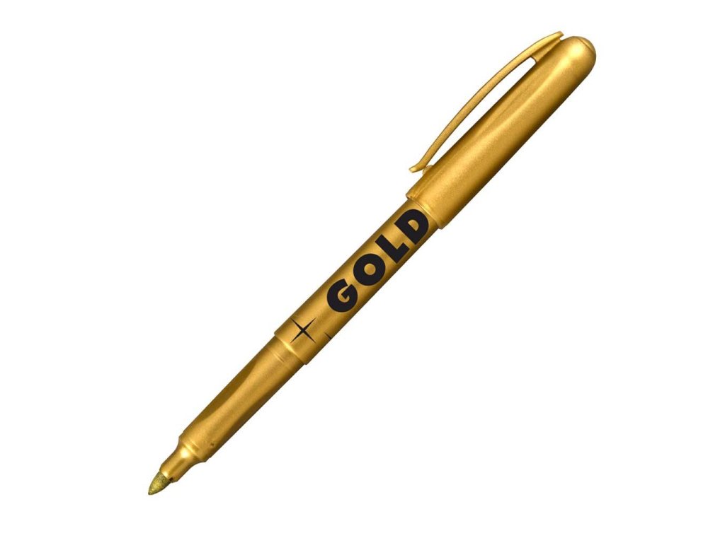 Permanentný značkovač vo vzťahu k papieru a pórovitým materiálom, polopermanentný na nepórovitých materiáloch. Vhodný na dekorácie a kresby, ktoré vyniknú najmä na tmavom papieri. Šírka stopy 1,8 mm. Atrament sa ľahko zmýva z kože, je zdravotne nezávadný a bez zápachu. Väčšie balenie 10 ks v jednej farbe.Farba: zlatá