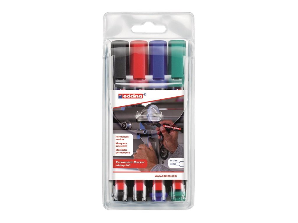 Permanentný popisovač vhodný na trvanlivé popisovanie, značenie, maľovanie a vyznačovanie takmer na všetky materiály vrátane kovu, skla a umelých hmôt. Plastový obal. Okrúhly hrot, šírka stopy 1,5 - 3 mm. Dopĺňateľný atramentom edding MTK 25 obj. kód ED250001 - 4. Väčšie balenie 10 ks v jednej farbe.Farba: sada 4 farieb