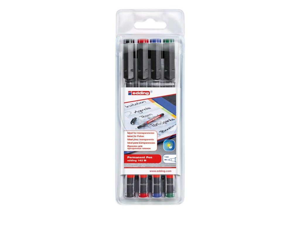 Popisovač na popisovanie fólií na spätnú projekciu. Hrot okrúhly, šírka stopy 1 mm. Sada 4 farieb.Farba: mix 4 farieb