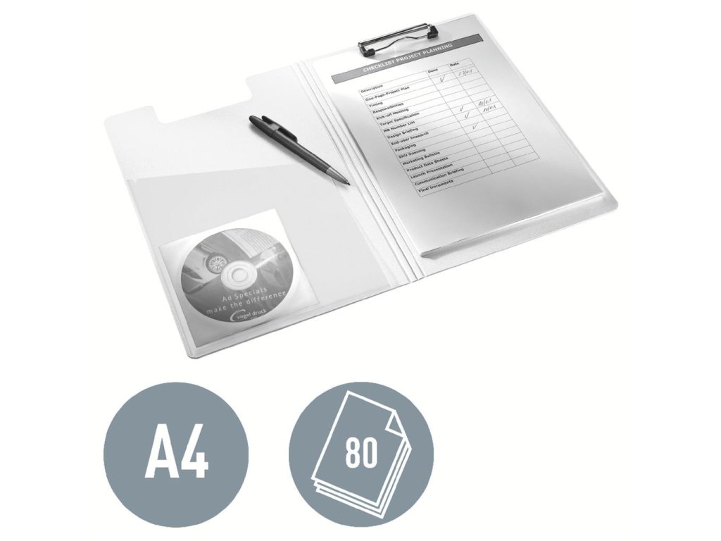 Pevná písacia podložka A4 na každodenné použitie v sviežej farbe WOW s dvojfarebným efektom. Ideálna na zabezpečenie papierov na cestách alebo počas prezentácií a prejavov. Silná kovová spona chráni bezpečne papiere pred vypadnutím. Vrecko na voľné papiere a drobné predmety. Farba červená, kapacita 75 listov A4 (80 g/m2).Dodatočné parametre