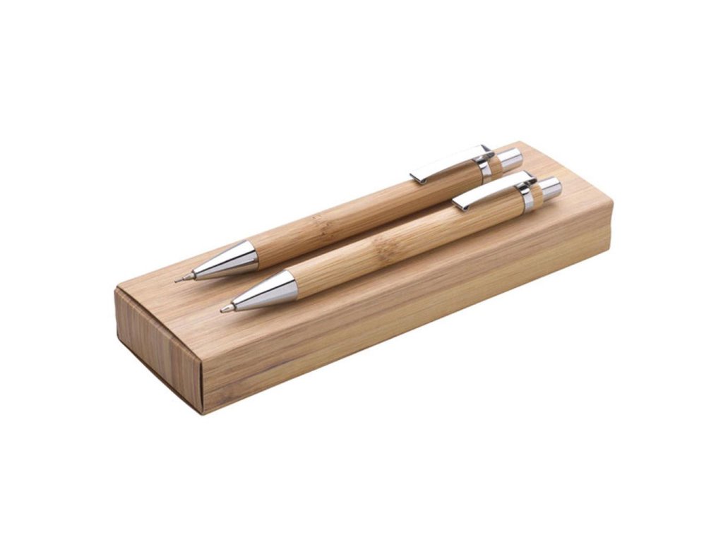 Guľôčkové pero a mikrotužka majú bambusové telo. Krabička je papierová s motívom bambusového dreva.Dodatočné parametre
