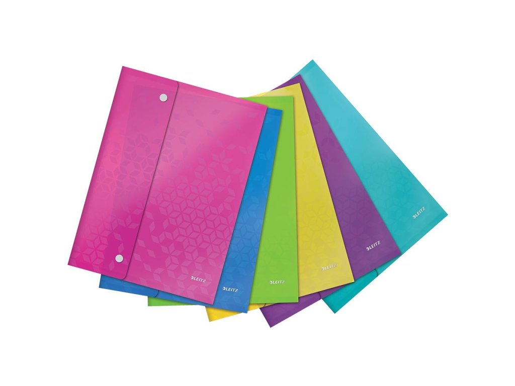 Obaly na dokumenty bez multiperforácie v dizajne radu Leitz WOW. Jednoduché uzatváranie vďaka plastovým cvočkom. Kapacita 120 listov papiera formátu A4. Vyrobené z embosovanej PP fólie. Balenie 6 ks v mixe farieb (ľadová modrá, metalická modrá, metalická zelená, metalická oranžová, metalická ružová a purpurová).Dodatočné parametre
