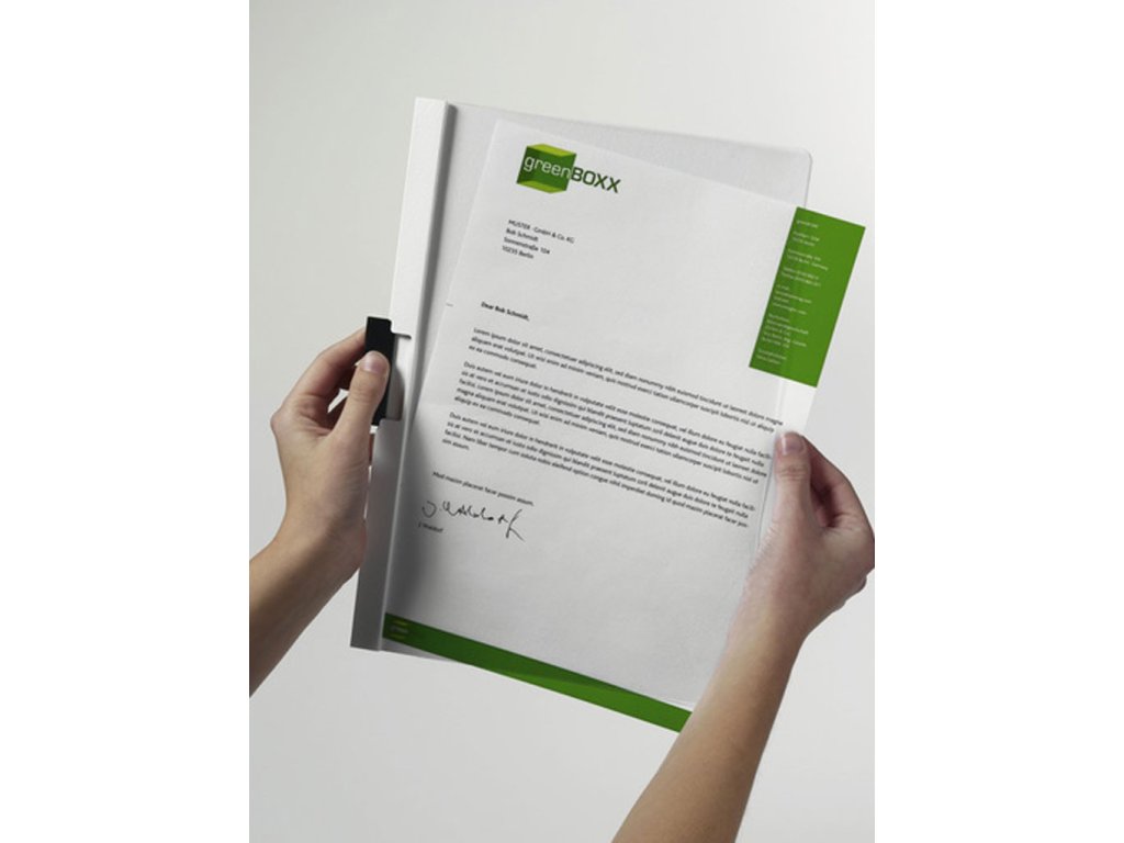 Obal vyvinutý spoločnosťou DURABLE pre viazanie nedierovaných listov. Materiál z PVC s unikátnym kovovým klipom, ktorý sa prispôsobí vloženému počtu listov a priehľadnou prednou stranou. Ideálny na prezentácie, ponuky, správy, poznámky na konferencie, semináre a pod. Formát A4. Kapacita 1-30 listov. Väčšie balenie 25 ks.Kapacita: 1-30 listov