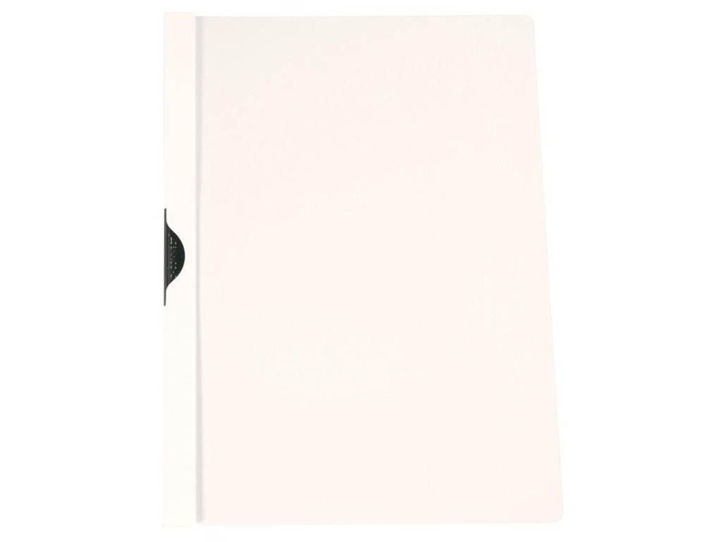 Obal z pevného polypropylénu s priehľadnou prednou stranou a kovovým vyklápacím klipom v čiernej farbe. Formát A4. Kapacita 1 - 30 listov. Väčšie balenie 25 ks. Farba biela.Dodatočné parametre
