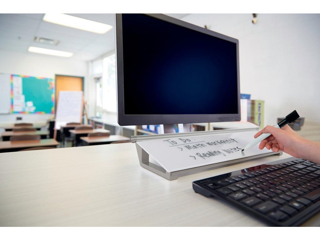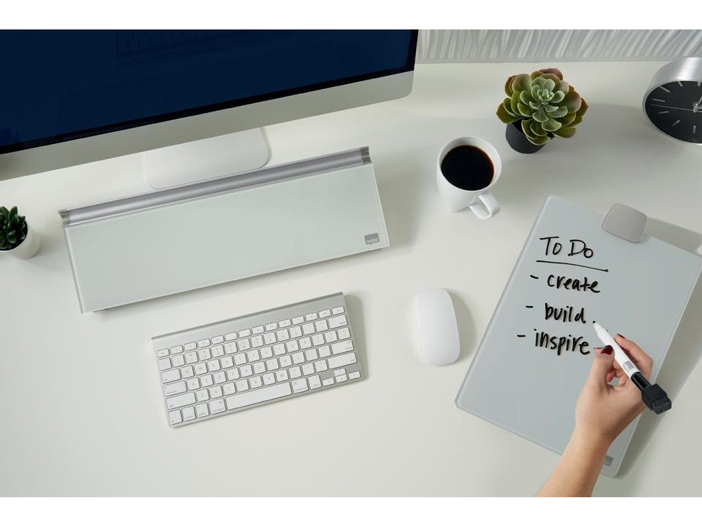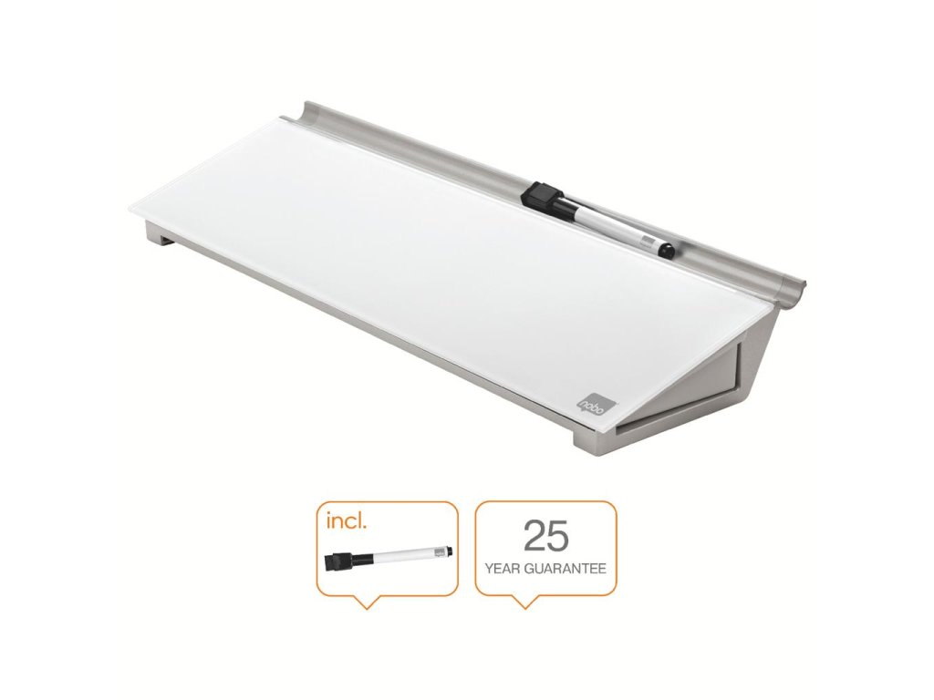 Sklenená stolová podložka je unikátny doplnok na stôl na písanie poznámok a odkazov. Bezrámčekový dizajn a sklenený povrch tabule ponúka najvyššiu odolnosť proti šmuhám od atramentu a škrabancom. Písacia plocha je vždy poruke a písanie poznámok je tak veľmi pohodlné. Výrobok sa perfektne hodí do priestoru za klávesnicou. Skrytý úložný priestor vnútri vám pomôže si udržať čistý pracovný stôl. Dodávané s minipopisovačom Nobo s hubkou na viečku.Dodatočné parametre