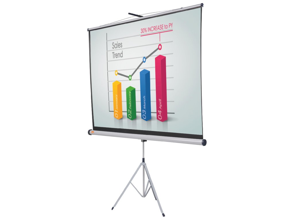 Široká škála veľmi kvalitných, univerzálnych projekčných plátien na trojnohom stojane. Žiarivý matne biely povrch plátna s čiernym okrajom zaručuje ostrý, podrobný obraz, ktorý zreteľne uvidia všetci diváci. Dá sa ľahko zasunúť do puzdra, aby bolo chránené pred poškodením. 1750 × 1325 mm.Dodatočné parametre