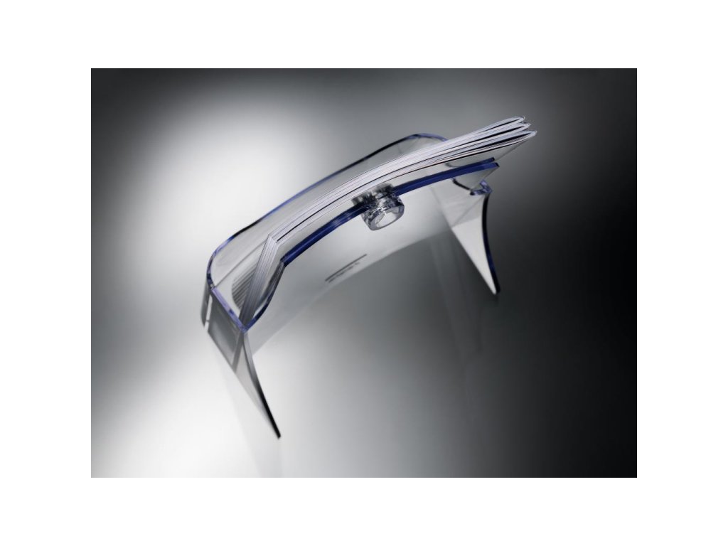 Stolný stojan s jedným odkladačom unikátneho dizajnu z vysokokvalitného akrylu. Ideálny na brožúry, katalógy a letáky. Hĺbka odkladača 30 mm. 25-ročná záruka na odolnosť voči UV žiareniu. Rozmery 170 × 200 × 75 mm. Farba číra.Dodatočné parametre