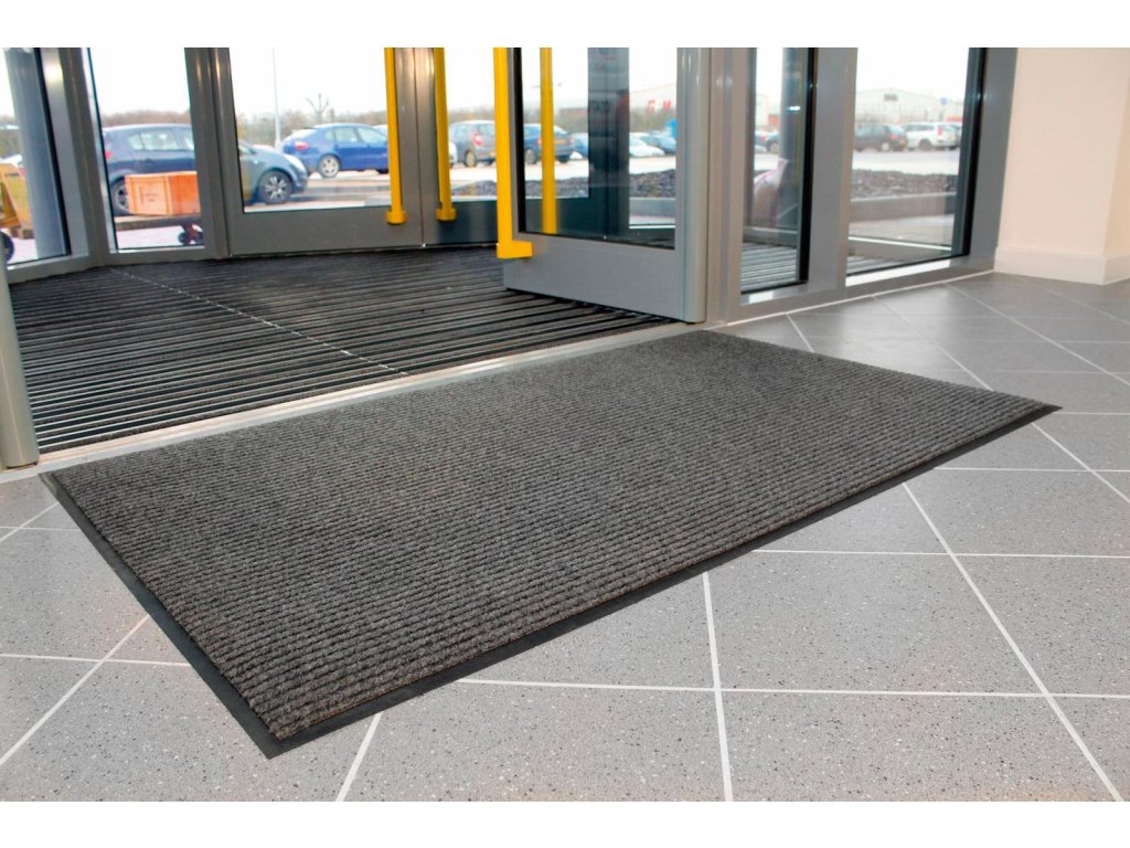 Vstupná rohož s rebrovaným povrchom, ktorý je určený pre náročné vstupné zóny. Vytvára „kanáliky“ na zachytenie špiny a nečistôt a vysušuje vlhkosť z podrážok, čím zvyšuje bezpečnosť chôdze na hladkej podlahe. Vhodná do vstupných priestorov, hál a chodieb. Vlas zo 100% polypropylénu, spodná strana rohože z PVC s ochranou proti znečisteniu a pošmyknutiu. Výška 9 mm. Trieda horľavosti podľa európskej normy EN 13501-1. Rozmery 60 x 90 cm. Farba sivá.Dodatočné parametre
