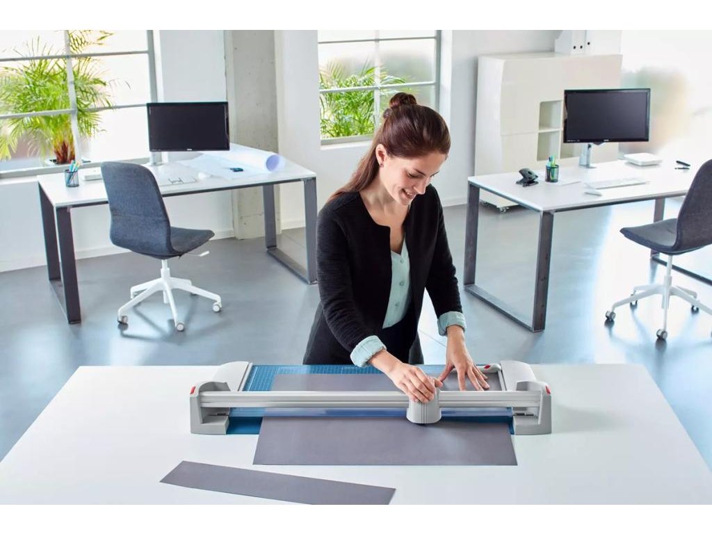 Profesionálna rezačka s kovovou základňou a presným rezom na grafické účely (filmy, fólie, papier). Stabilná kovová základňa s protišmykovými gumenými nožičkami pre bezpečné udržanie rotačného rezača na miesteUžitočné formátovacie čiary na základni s milimetrovým delením pozdĺž reznej hrany uľahčujú zarovnanie rezaného materiálu. Kvalita na dosiahnutie najvyššej presnosti - automatický prítlak pohybom rezacej hlavy, nastaviteľný zadný doraz s použitím na oba boky, množstvo zakreslených orientačných DIN formátov. Kruhový nôž umiestnený v plastovom ochrannom kryte sa automaticky brúsi pri rezaní o protinôž (oba nože z tvrdenej ocele). Mierka v cm/inch. Možnosť montáže na stenu.