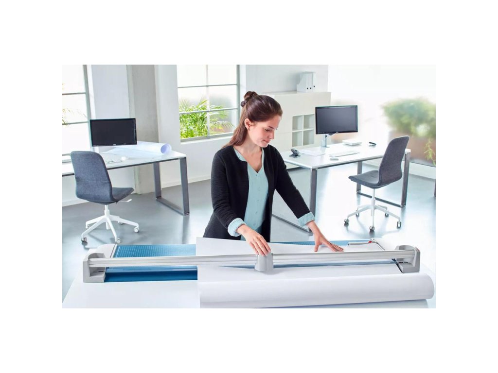 Profesionálna rezačka so stabilnou kovovou základňou s protišmykovými gumenými nožičkami a presným rezom na grafické účely (filmy, fólie, papier). Kvalita na dosiahnutie najvyššej presnosti - automatický prítlak pohybom rezacej hlavy, nastaviteľný zadný doraz s použitím na oba boky, množstvo zakreslených orientačných DIN formátov. Kruhový nôž umiestnený v plastovom ochrannom kryte sa automaticky brúsi pri rezaní o protinôž (oba nože z tvrdenej ocele). Mierka v cm/inch. Možnosť montáže na stenu.Automatické upnutie na línii rezu pre rýchle upevnenie rezaného materiálu.