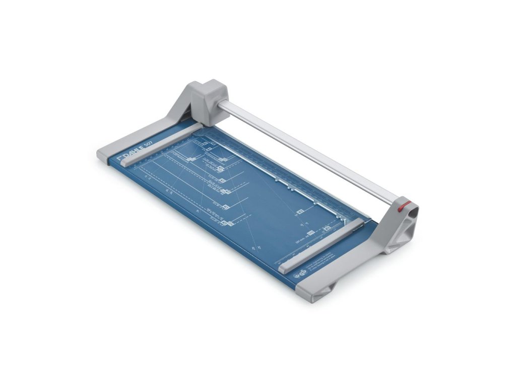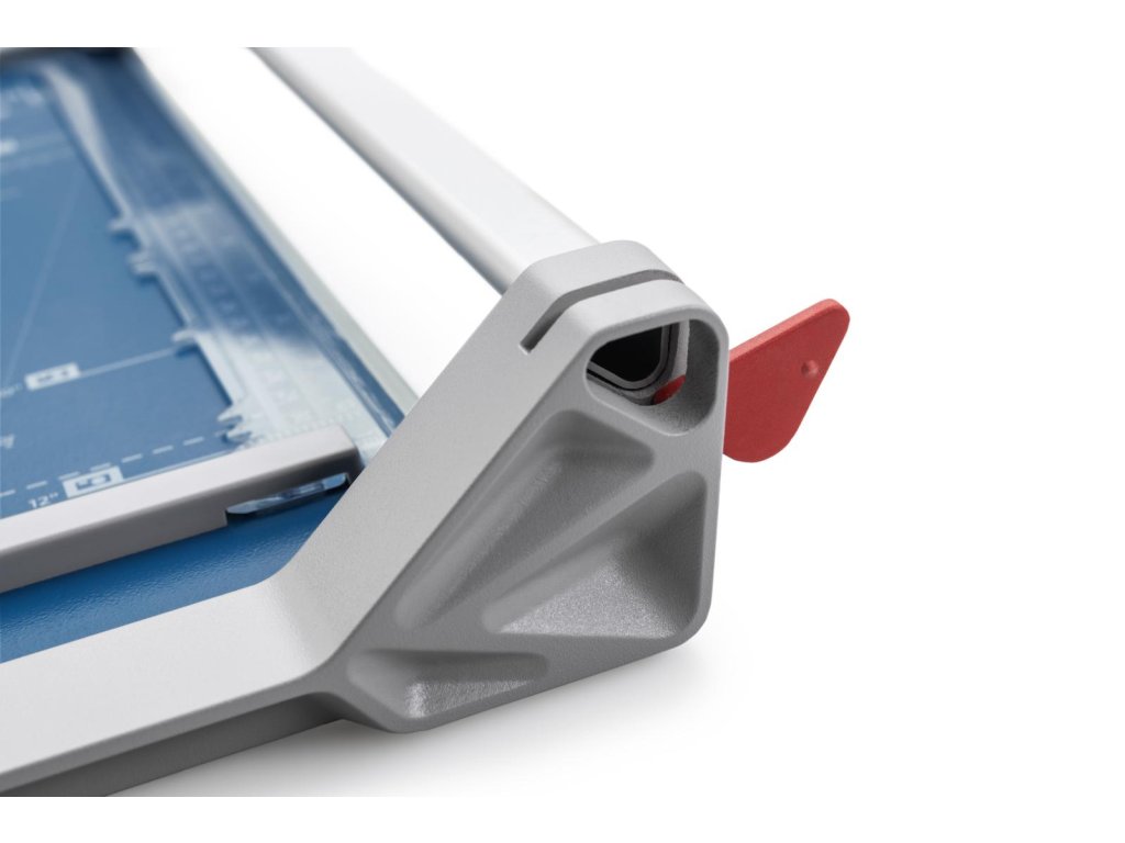 Rezačka s kruhovým nožom a kovovou základňou. Rotačný nôž v plastovom kryte, automatický prítlak, mierky v cm a DIN formátoch. Vhodná na rezanie papiera, etikiet, fotiek a filmov.Stabilná kovová základňa s protišmykovými gumenými nožičkami pre bezpečné udržanie rotačného vyžínača na mieste.