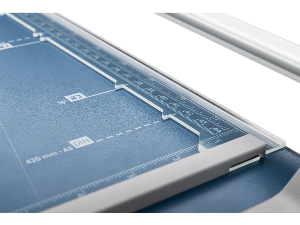 Užitočné formátovacie čiary na základni s milimetrovým delením pozdĺž reznej hrany uľahčujú zarovnanie rezaného materiálu.