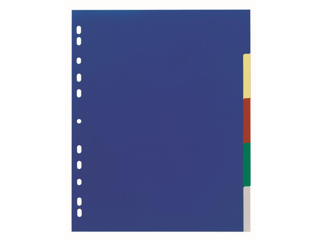 Farebný rozraďovač s 5 oddielmi vyrobený zo zosilneného plastu. Formát A4 maxi, eurodierovanie, popisovateľný papierový titulný list na ľahkú orientáciu v dokumentoch. Výsledný dokument pôsobí upravene a reprezentatívne. Väčšie balenie 20 sád.Farba: 5 farieb