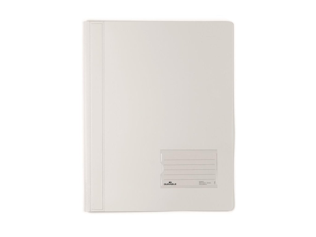 Elegantný rýchloviazač z farebného PVC a plastovým zakladacím viazačom. Priehľadné vrecko vo formáte vizitky (90 x 57 mm) na prednom obale a vnútorné vrecko na zadnej strane. Extra široký, vhodný aj na euroobaly. Väčšie balenie 25 ks. V kombinácii so zakladacím pásikom obj. kód DU2996 02 je možné archivovať rýchloviazač v zakladači.Farba: biela