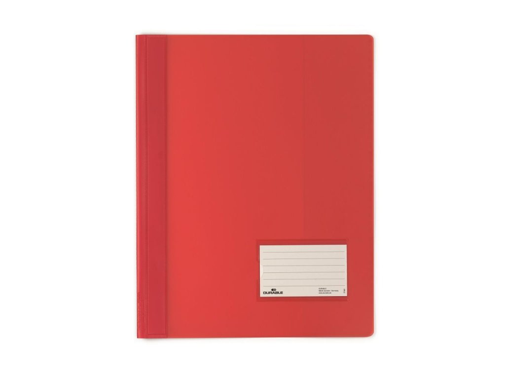Elegantný rýchloviazač z farebného PVC a plastovým zakladacím viazačom. Priehľadné vrecko vo formáte vizitky (90 x 57 mm) na prednom obale a vnútorné vrecko na zadnej strane. Extra široký, vhodný aj na euroobaly. Väčšie balenie 25 ks. V kombinácii so zakladacím pásikom obj. kód DU2996 02 je možné archivovať rýchloviazač v zakladači.Farba: červená