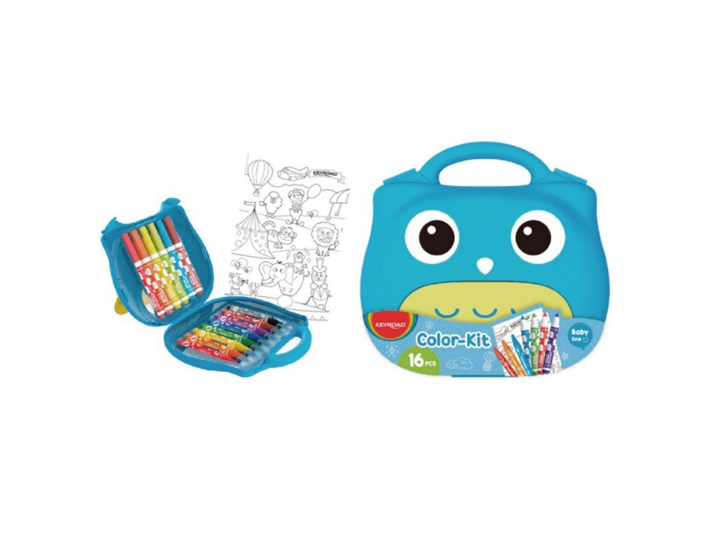 KEYROAD detská sada na kreslenie a maľovanie 16 dielov. Sada obsahuje: Jumbo fixky 6 ks, Jumbo voskovky 8 ks, veľká omaľovánka 1 ks, boxík s rukoväťou 1 ks. Séria Baby Line - pre najmenších. Farba: mix farieb.Dodatočné parametre