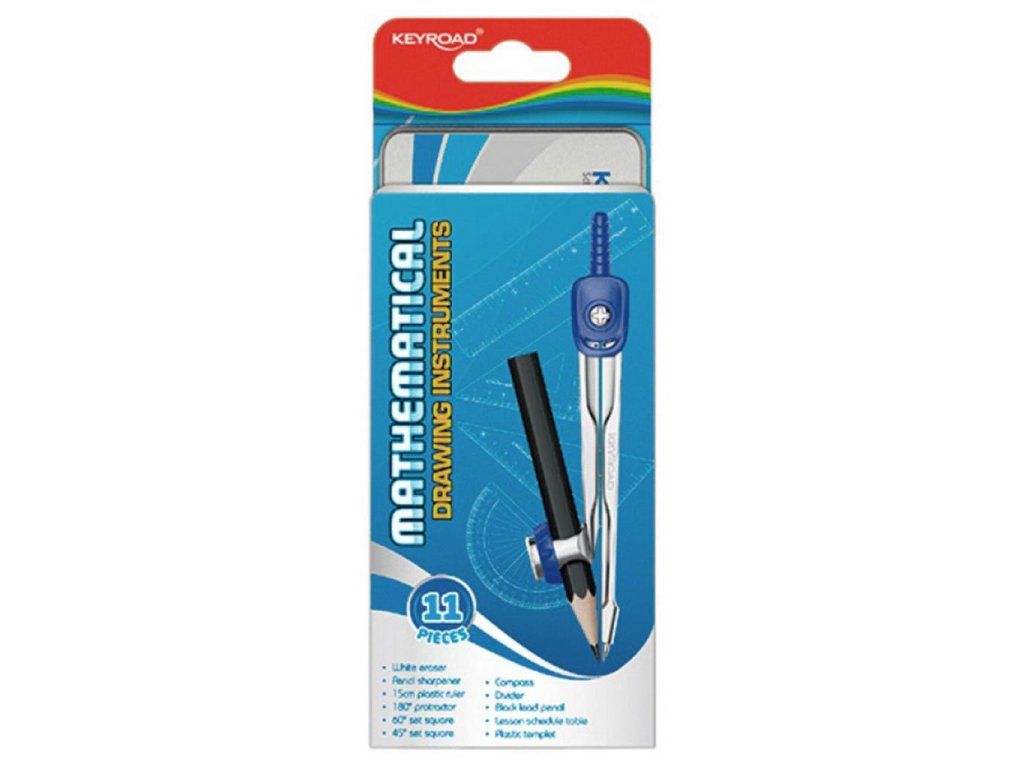 Školská matematická súprava v kovovom puzdre, 11 kusov vyrobených z odolného materiálu, vysoko kvalitné produkty. Sada obsahuje: kružidlo, biela guma, strúhadlo, 180° uhlomer, 15 cm plastové pravítko, tabuľka rozvrhu hodín, plastová šablóna s číslami a písmenami, 45° plastový trojuholník, 60° plastový trojuholník, čierna ceruzka. Mix farieb.Dodatočné parametre