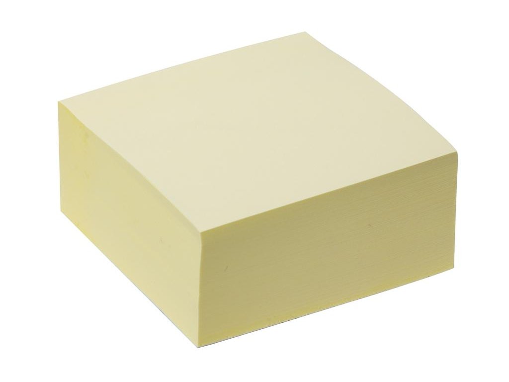 Žlté samolepiace lístky v tvare kocky, ktoré držia na väčšine povrchov, dajú sa odlepiť bez poškodenia povrchu a znova nalepiť. Rozmery 76 x76 mm. Počet lístkov 400.Certifikát FSC.