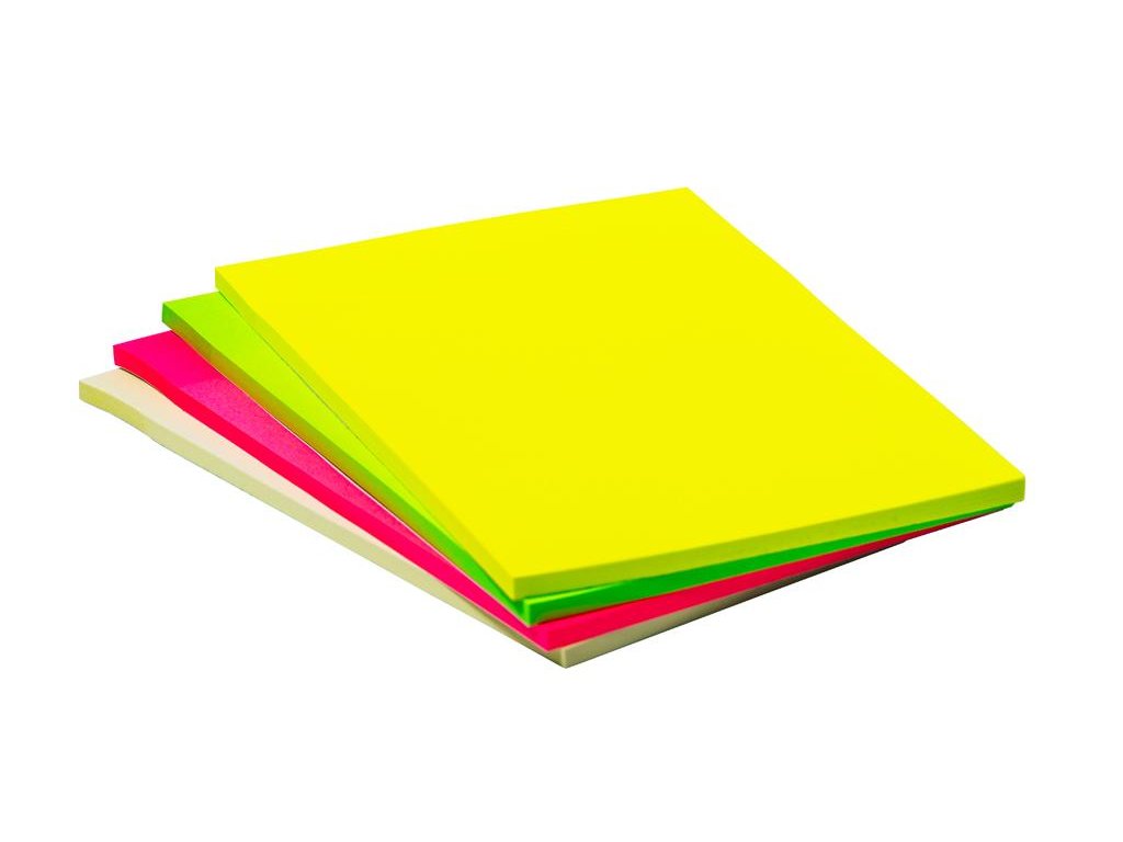 Extra veľký formát, intenzívne farby, použiteľné aj ako cestovné lepiace poznámky pre obzvlášť dlhé správy. Bezpečne priľnú, dajú sa odstrániť bez zanechania zvyškov a znovu použiť. Papier 70g, 45 listov na farbu. Farby: pastelová žltá, neónovo žltá, neónovo zelená, neónovo ružová. Počet lístkov 4x45. Rozmer 101 x 150 mm.Dodatočné parametre