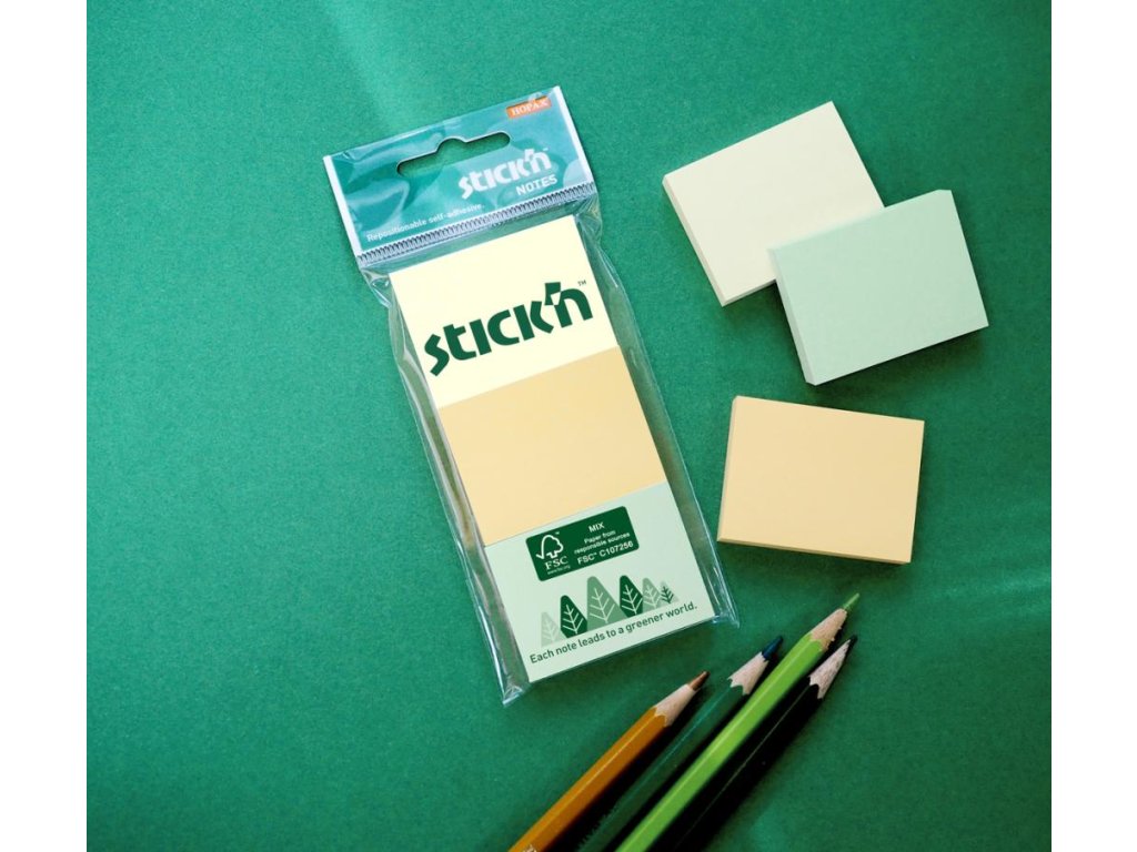 Samolepiace bločky v mixe pastelových farieb vyrobený z papieru, ktorý pochádza z ekologicky obhospodarovaných lesov. Certifikovaný papier šetrný k prírode využívá lepidlo na vodnej báze. Lístky idú ľahko nalepiť a odlepiť, napriek tomu skvelo držia. Nezanechávajú stopy po lepidle. Rozmery: 38 x 51mm, 3x100 lístkov, mix pastel. farieb, 3 bločky v balení.Dodatočné parametre