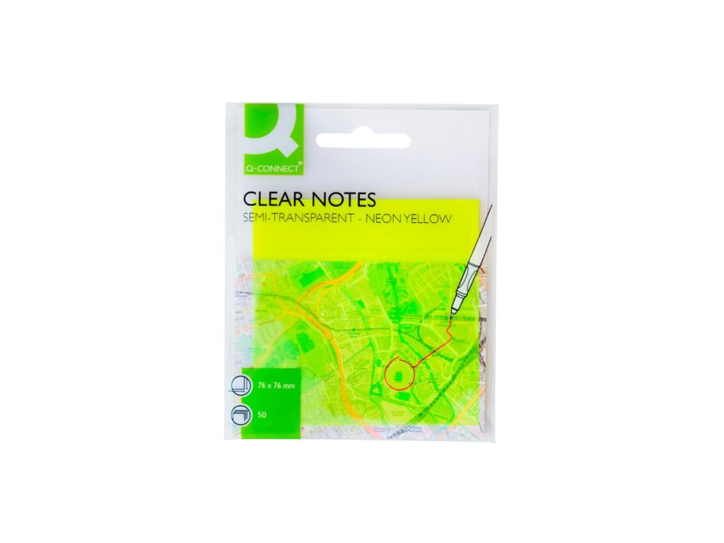 Samolepiaci bloček Q-CONNECT priehľadný, žltý, 76 x 76 mm, 50 lístkov