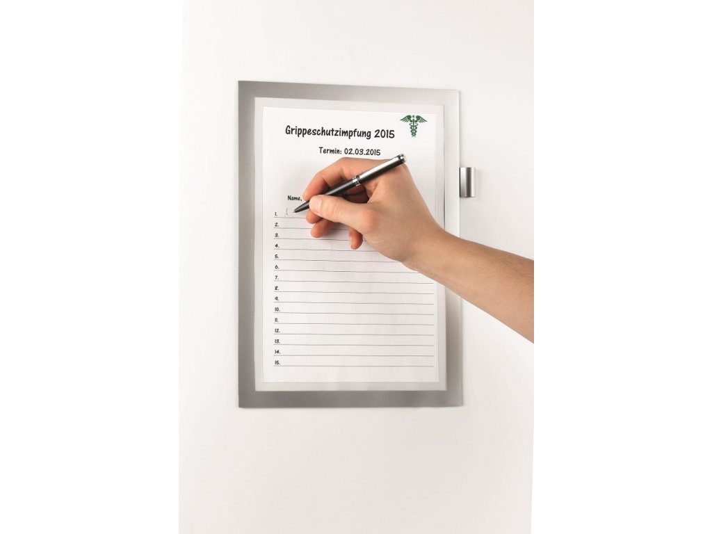 Samolepiaci panel s držiakom na pero slúži na písanie poznámok. Dodávaný s 5 listami na písanie. Formát A4. Farba strieborná.Dodatočné parametre