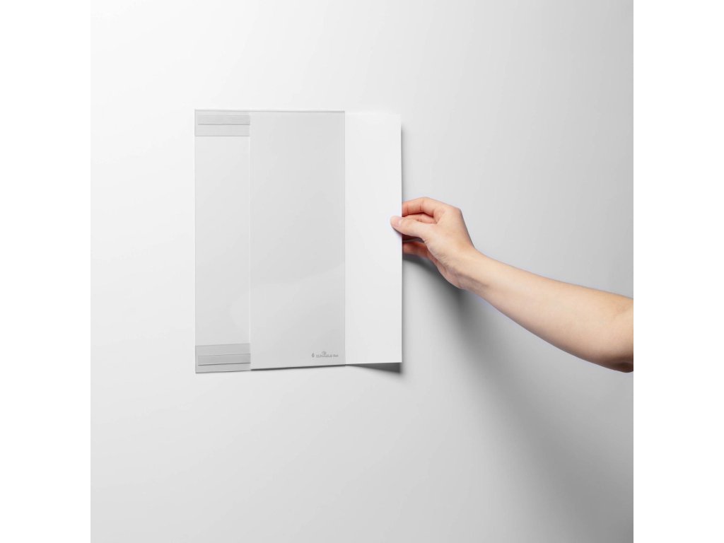 Na použitie vo formáte na výšku na hladkých aj nerovných povrchoch (čistých a stabilných)Trvalo samolepiace vďaka dvom lepiacim pásikom na zadnej strane