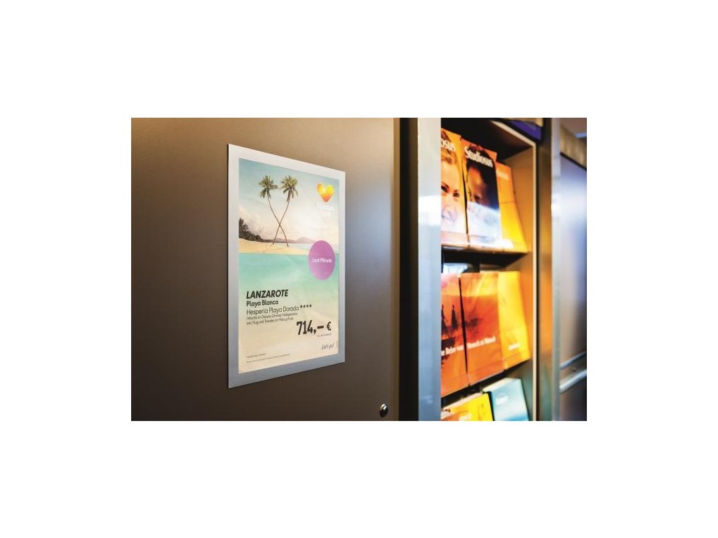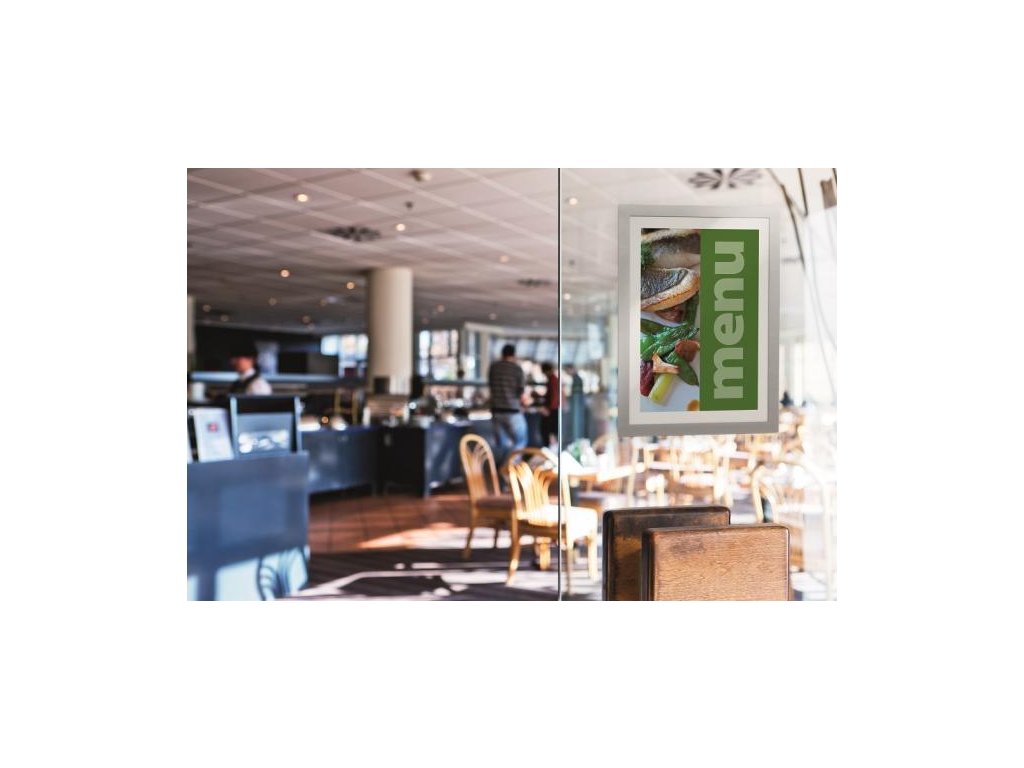 Samolepiaci informačný panel s prednou magnetickou časťou. Ideálny na vystavovanie plagátov, kľúčových informácií, špeciálnych oznamov alebo dôležitých čísel. Informácie sa ľahko vymieňajú a sú čitateľné z oboch strán, ak sa panel umiestni napr. na okno alebo priehľadné dvere. Vhodný na hladké a pevné povrchy. V prípade potreby je ľahko premiestniteľný bez potreby vŕtania. Formát A4, rámik strieborný. Balenie 10 ks.Dodatočné parametre