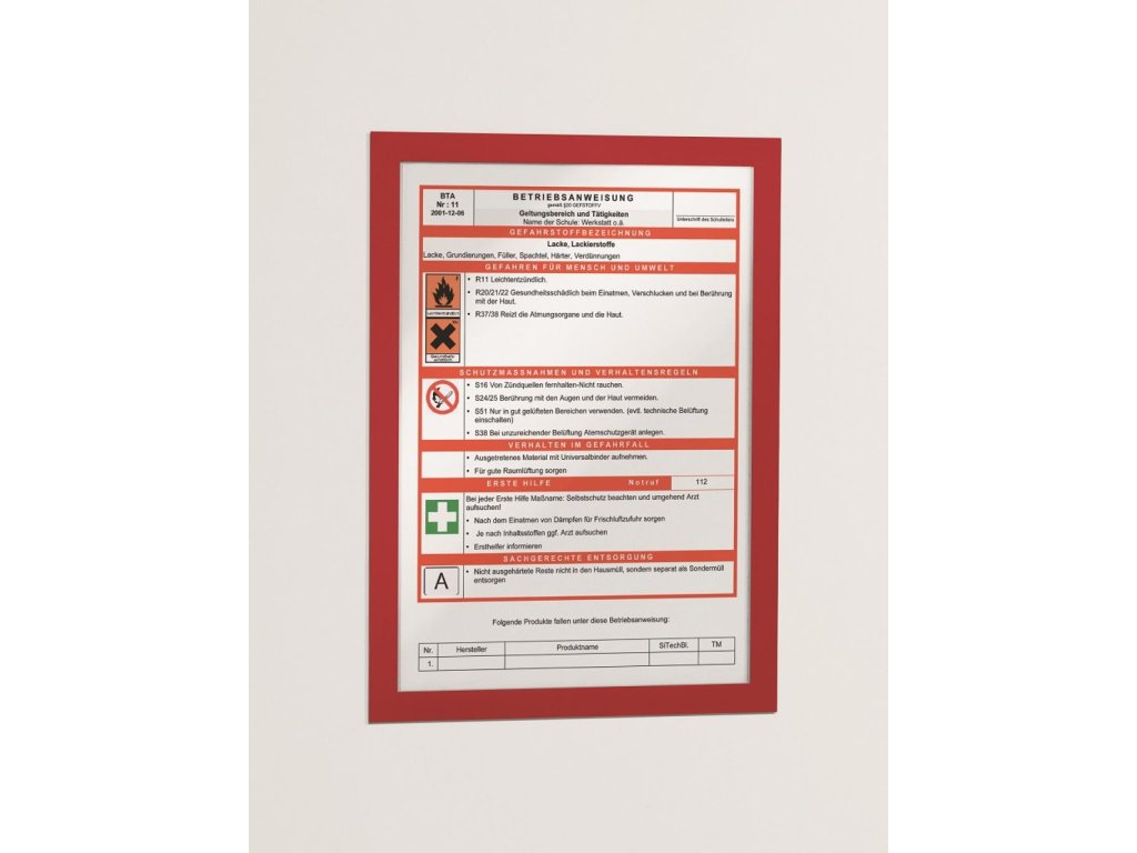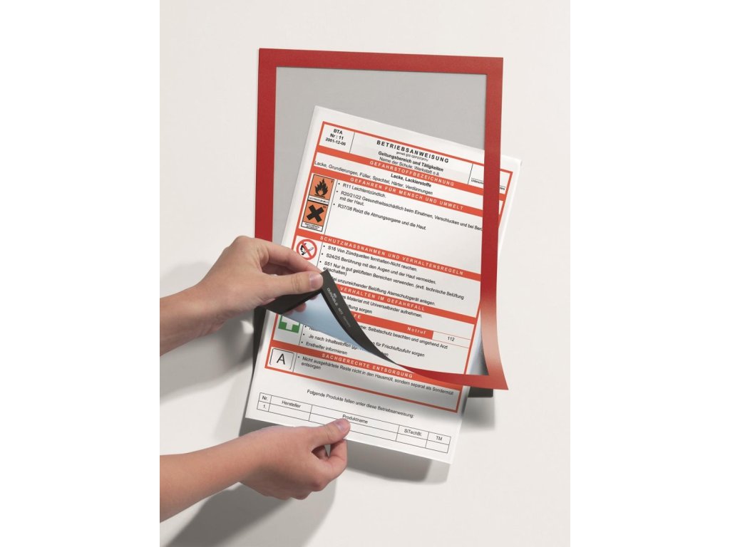 Samolepiaci informačný panel s prednou magnetickou časťou. Ideálny na vystavovanie plagátov, kľúčových informácií, špeciálnych oznamov alebo dôležitých čísel. Informácie sa ľahko vymieňajú a sú čitateľné z oboch strán, ak sa panel umiestni napr. na okno alebo priehľadné dvere. Vhodný na hladké a pevné povrchy. V prípade potreby je ľahko premiestniteľný bez potreby vŕtania. Formát A4, rámik červený.Dodatočné parametre