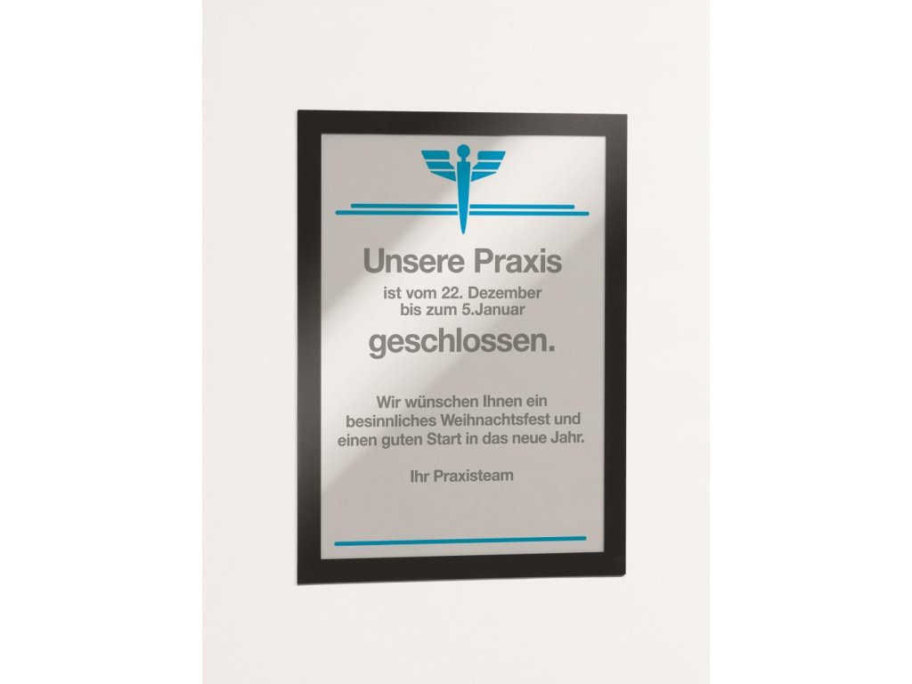 Samolepiaci informačný panel s prednou magnetickou časťou. Ideálny na vystavovanie plagátov, kľúčových informácií, špeciálnych oznamov alebo dôležitých čísel. Informácie sa ľahko vymieňajú a sú čitateľné z oboch strán, ak sa panel umiestni napr. na okno alebo priehľadné dvere. Vhodný na hladké a pevné povrchy. V prípade potreby je ľahko premiestniteľný bez potreby vŕtania. Formát A4, rámik čierny.Dodatočné parametre