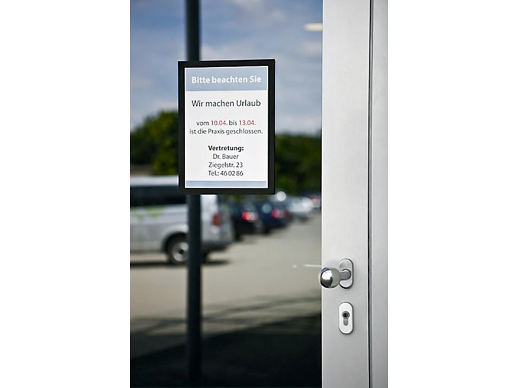 Samolepiaci informačný panel s prednou magnetickou časťou. Ideálny na vystavovanie plagátov, kľúčových informácií, špeciálnych oznamov alebo dôležitých čísel. Informácie sa ľahko vymieňajú a sú čitateľné z oboch strán, ak sa panel umiestni napr. na okno alebo priehľadné dvere. Vhodný na hladké a pevné povrchy. V prípade potreby je ľahko premiestniteľný bez potreby vŕtania. Formát A4, rámik modrý.Dodatočné parametre