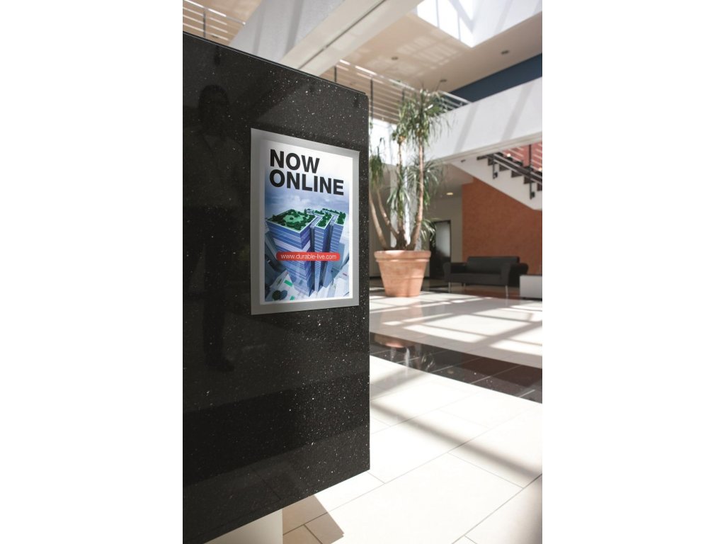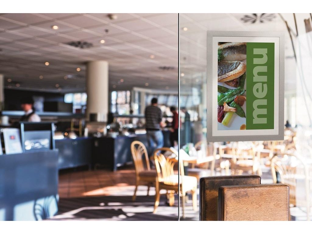 Samolepiaci informačný panel s prednou magnetickou časťou. Ideálny na vystavovanie plagátov, kľúčových informácií, špeciálnych oznamov alebo dôležitých čísel. Informácie sa ľahko vymieňajú a sú čitateľné z oboch strán, ak sa panel umiestni napr. na okno alebo priehľadné dvere. Vhodný na hladké a pevné povrchy. V prípade potreby je ľahko premiestniteľný bez potreby vŕtania. Formát A4, rámik strieborný.Dodatočné parametre