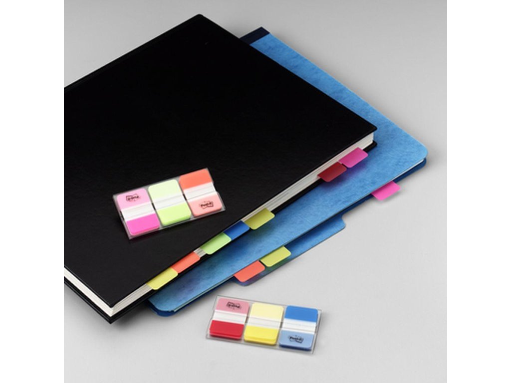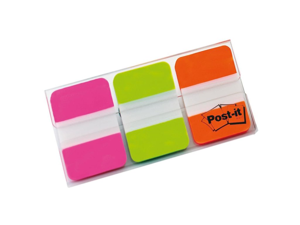 Plastové záložky s extra silnou priľnavosťou. Premiestniteľné, odstraniteľné a popisovateľné perom, ceruzkou alebo popisovačom. Rozmery 25 × 38 mm, v balení 3 × 22 ks záložiek. Neónové farby: ružová, zelená a oranžová.- Post-it® záložky pomáhajú vytvoriť poriadok jednoduchým rozdelením plánovačov, kalendárov a zložiek na samostatné časti.