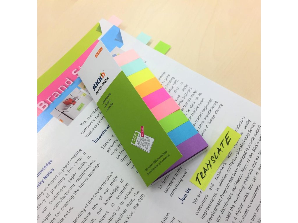 Papierové samolepiace záložky vo výrazných farbách skvele označia a zvýraznia dokumenty a texty. Je možné ich ľahko nalepiť a odlepiť bez zanechania stôp po lepidle. Rozmery 12 x 50 mm. Počet lístkov 9 x 50.Dodatočné parametre