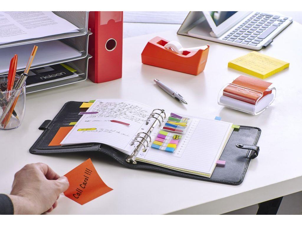 - Post-it® úzke označovacie štítky ponúkajú vynikajúce riešenie na označenie dôležitých strán.