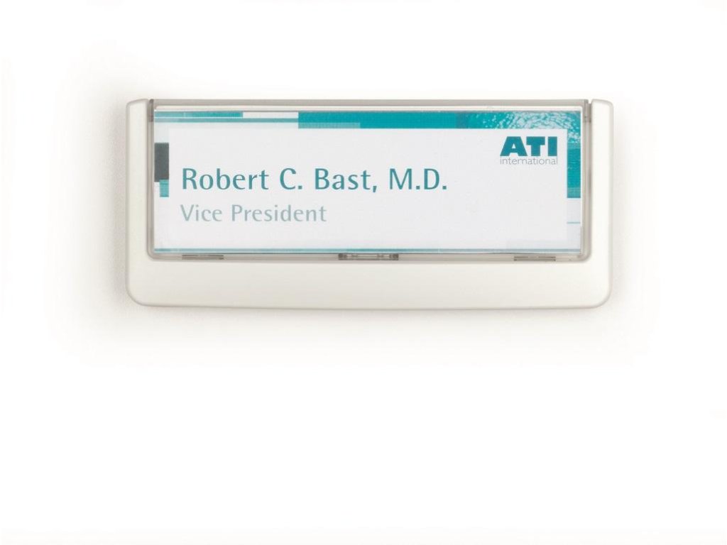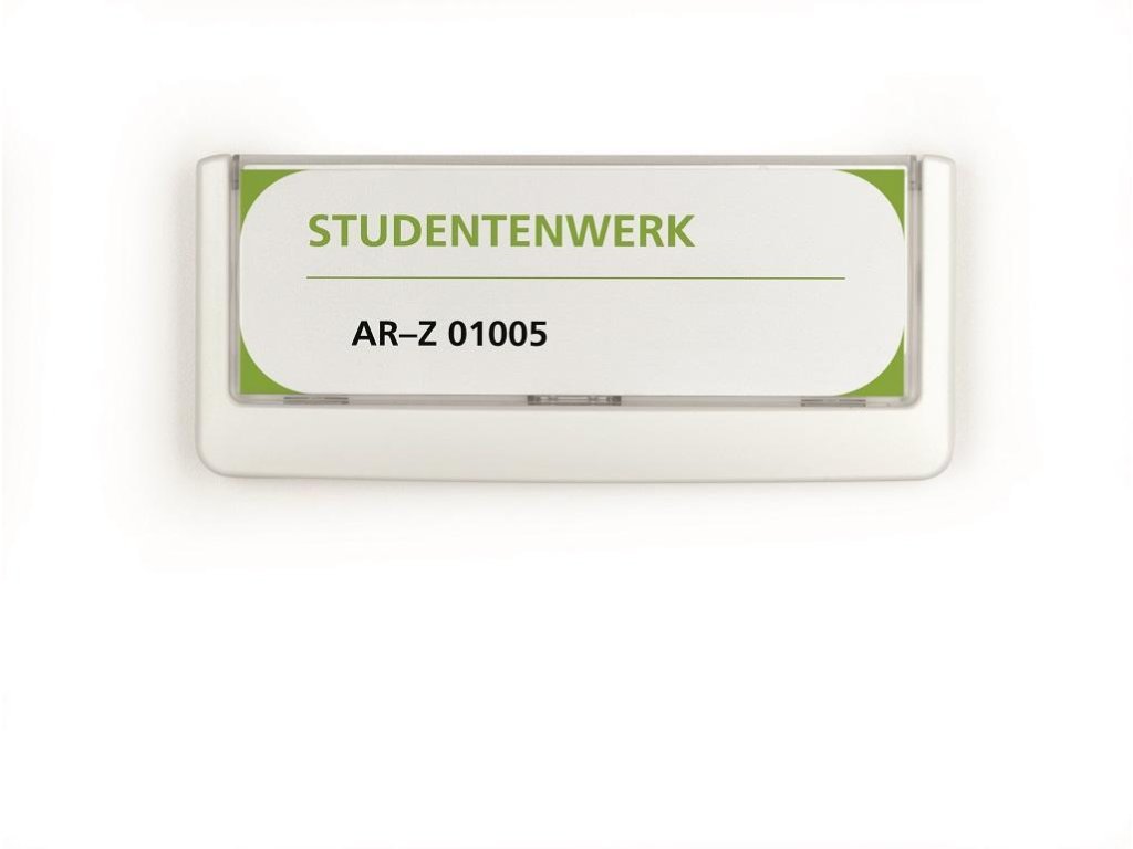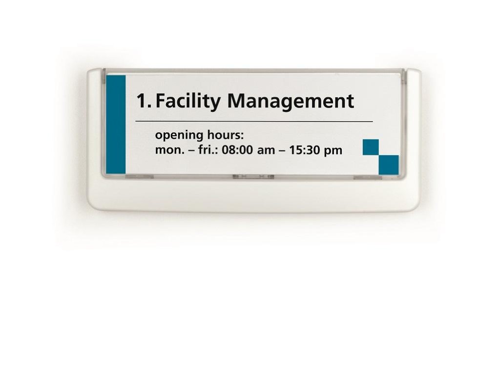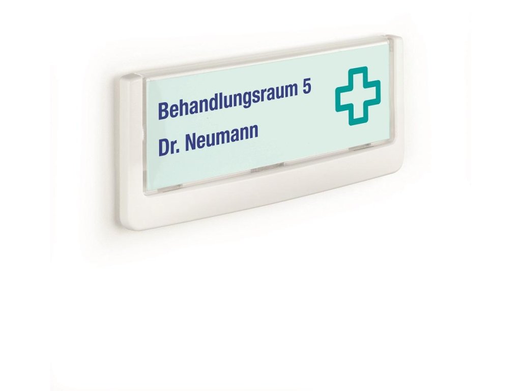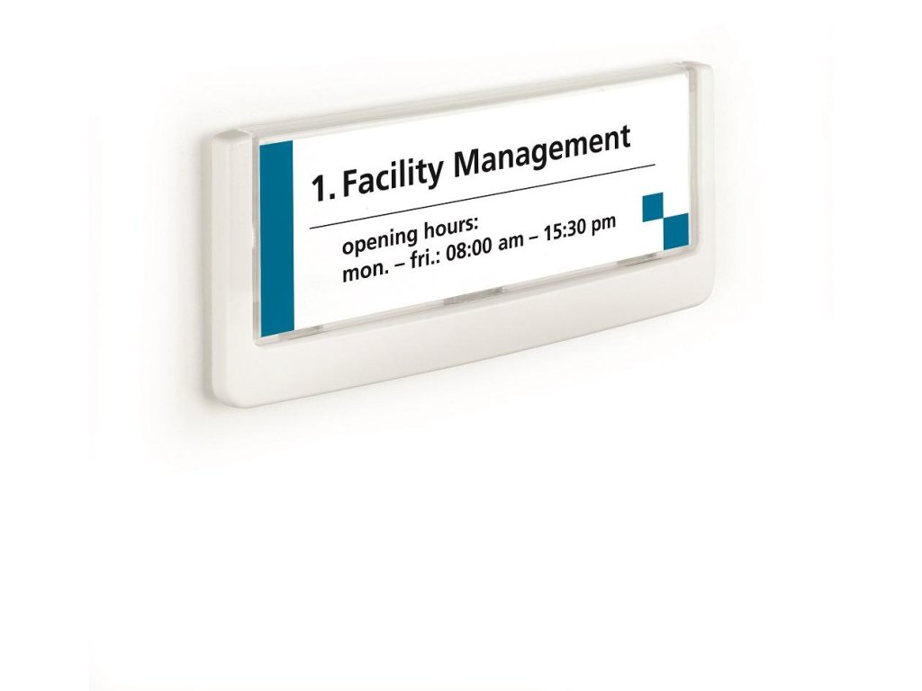 Moderná informačná tabuľka na dvere s lemom v bielej farbe. Predný panel sa otvára na jedno zatlačenie, a tým sa jednoducho sprístupnia vložené popisné papiere, ktoré sa môžu vymieňať podľa potrieb. Ideálna do kancelárií, úradov, škôl, univerzít a hotelov. Súčasťou balenia je montážna sada s názorným návodom. Namiesto pevného montovania môže byť tabuľka k povrchu aj prilepená.Rozmery: 149 x 52,5 mm